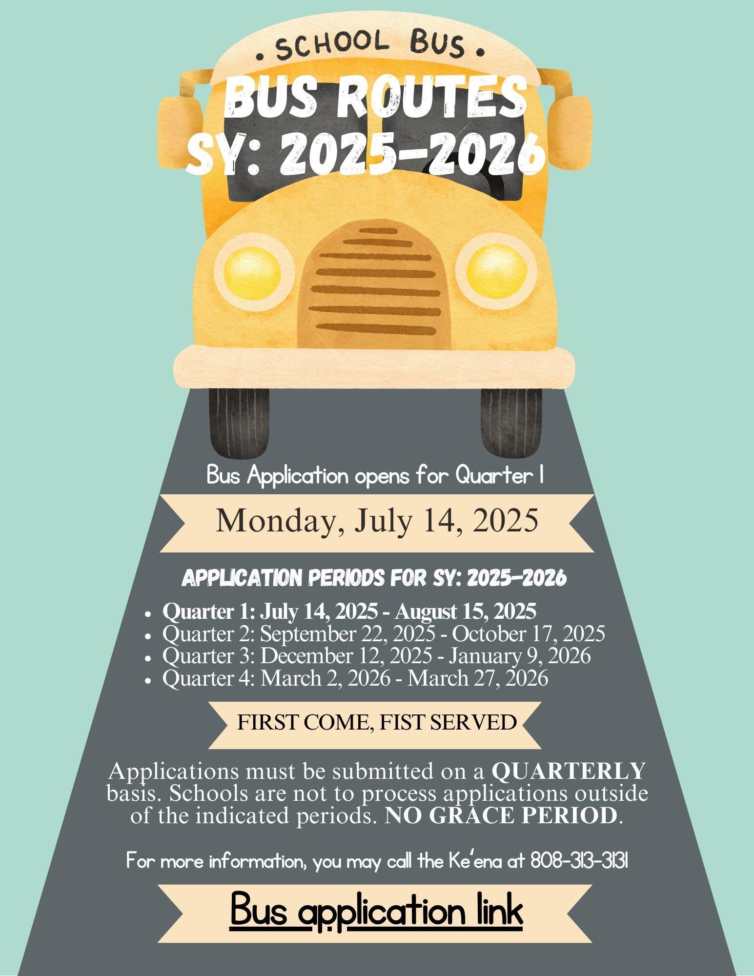 School Bus Service – Quarter 1 Applications open July 14, 2025